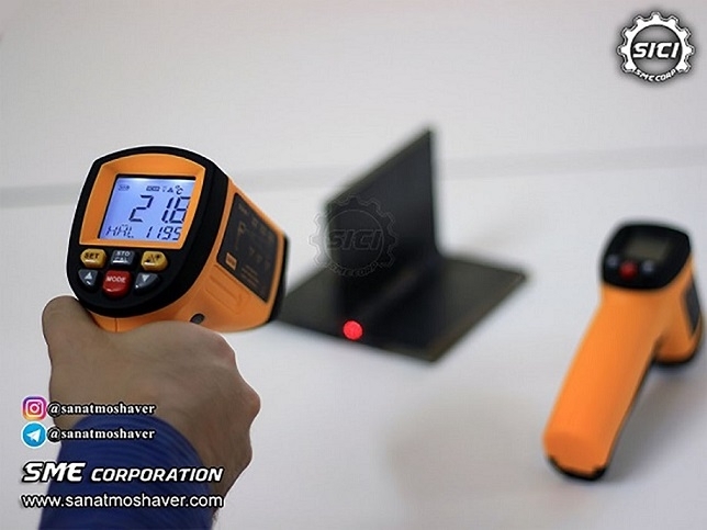 ترمومتر لیزری: جهت اندازه گیری دما بدون تماس با سطح اجسام به کمک استفاده از سنسور های مادون قرمز ،