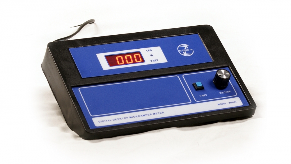 دستگاه میکرو آمپرمتر مدل 83 ZBA که برای این منظور طراحی و ساخته شده شامل یک منبع ولتاژ مستقیم قابل تنظیم (صفر تا 1999 میلی ولت DC ) و یک آمپرمتر حساس (صفر تا 1999 میلی آمپر) است . این وسیله برای تمام آزمایشهای مربوطه از جمله روشهای بی آمپرومتری و کارل فیشر قابل استفاده خواهد بود .