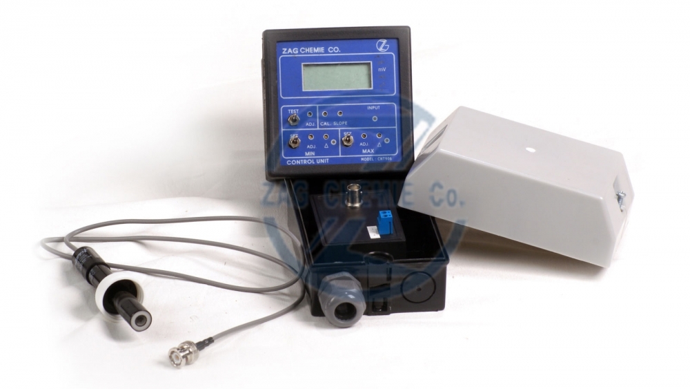 دستگاه كنترل ORP مدل 73A CNT906 اندازه گيريهاي پتانسيل اكسايش وكاهش(ORP)جزومعمولترين روشهاي الكتروشيمياي است كه براي سنجش مقدارفعاليت يونهاوتعيين خواص كاهنده يا اكسنده محلولهابه كارمي رود.اين اندازه گيري ازجهاتي اندازه گيريPH شباهت داردبا اين تفاوت كه به جاي الكترود شيشه حساس به Hازالكترودهاي فلزي,پلاتين نقره’و.. به همراه يك الكترودمرجع استفاده مي شود.همچنين الكترودمركب پلاتين-كالومل يا(پلاتين Ag/AgCIازنوعoN-LINE بيشترين استفاده دردستگاههايORP را داشته درمواردخاص نيزالكترودهاي كروم’سيانيد…به كارميروند.اختلاف پتانسيل اين الكترودهابا دقت مناسب برروي نمايشگردستگاه نشان داده مي شود.درصورت افزايش يا كاهش پتانسيل نسبت به حدودتعيين شده (MAX و MIN)فرمانهائي براي افزايش موادشيميائي مورد نظرصادرمي گردد.