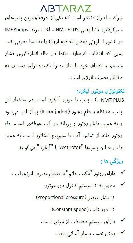 . پمپ سیرکولاتور دور متغیر هوشمند آبی .سری 100 کاربرد : مدارهای گرمایش شامل پمپ برگشت ، پمپ شوفاژ و گرمایش از کف