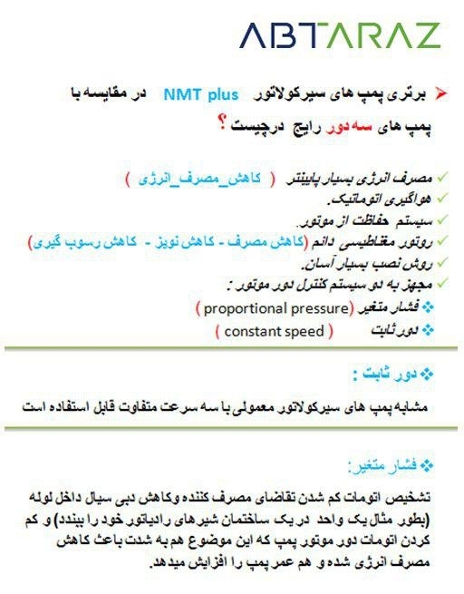 پاسخ : این پمپ برخلاف پمپ های معمولی که دور ثابتی دارند و با کاهش دبی ،هد آنها افزایش پیدا می کند ،بنا به نیاز مصرف کننده دور خود را تغییر می دهند یعنی با کاهش دبی ( نیاز مصرف کننده ) هد آن ها کاهش می یابد و به همین دلیل اتلاف انرژی و نویز ندارد .
