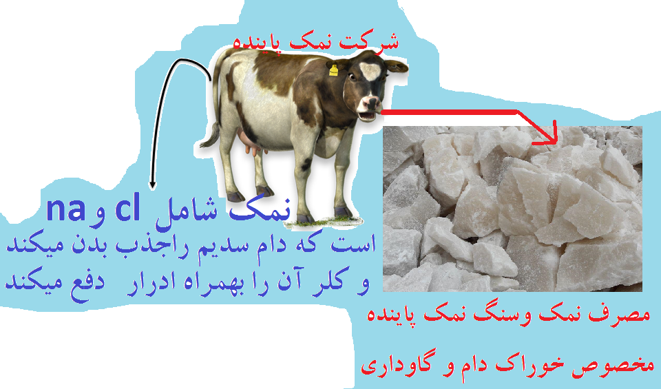 ازطرفی چون دام نیاز به سدیم نمک دارد درنتیجه چون کلر نمک را بهمراه ادرار دفع میکند باید ازنمکی استفاده کند که سدیم ان قابل جذب باشد