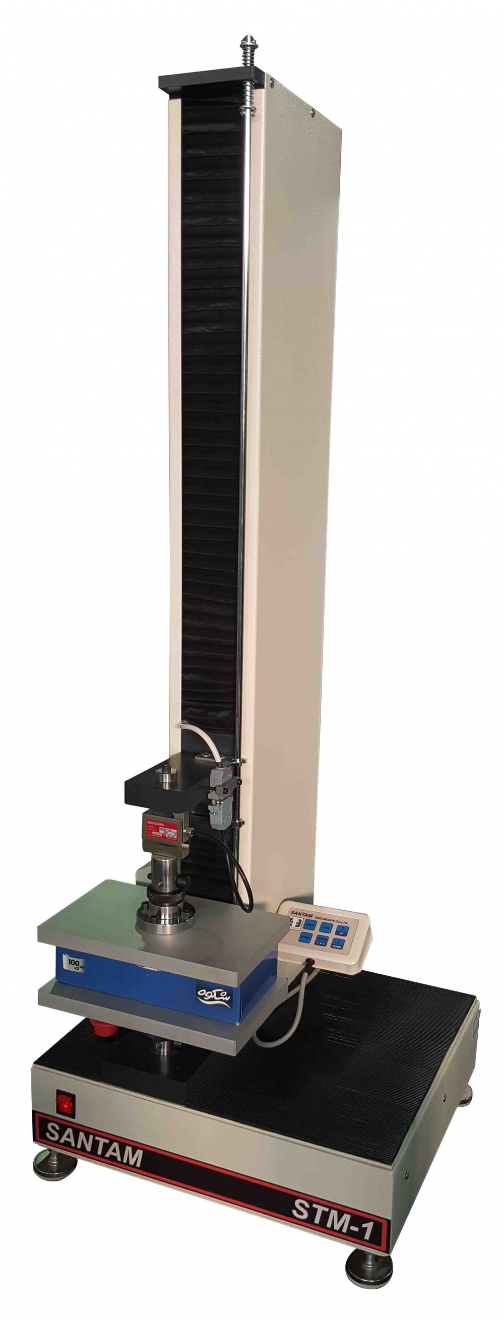 دستگاه تست کشش 100 کیلو -(STM-1) جهت تست های کشش، فشار، خمش و.... مواد در نیروی کم بوده که در آزمایشگاههای کنترل کیفی صنعت و مراکز تحقیقاتی به کار میرود. همچنین دستگاه قادر است خواص مکانیکی طیف وسیعی از مواد را تست نماید که بطور کلی بشرح زیر می باشند: - کنترل کیفی فیلم های چند لایه پلیمری - کنترل کیفی محصولات خوراکی و کشاورزی -کنترل کیفی مواد اولیه بکار رفته در بسته بندی - محصولات پلیمری در حوزه ی پزشکی و تزریقات - تست رشته های ظریف از جنس پلیمر و کتان - تست ضریب اصطکاک