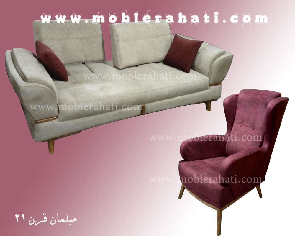 تکیه گاه کاناپه ها دارای یراق بوده که میتوان با یک حرکت آن به عقب برد و عمق مبل را زیاد کرد.