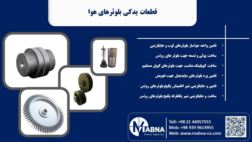 شرکت مهندسی مبنا پیشرو تجهیز(MPT) تامین کننده و تولیدکننده قطعات یدکی تجهیزات صنعت هوای فشرده مانند بلوئر، کمپرسور و پمپ وکیوم 21449575530 www.mabna-co.com