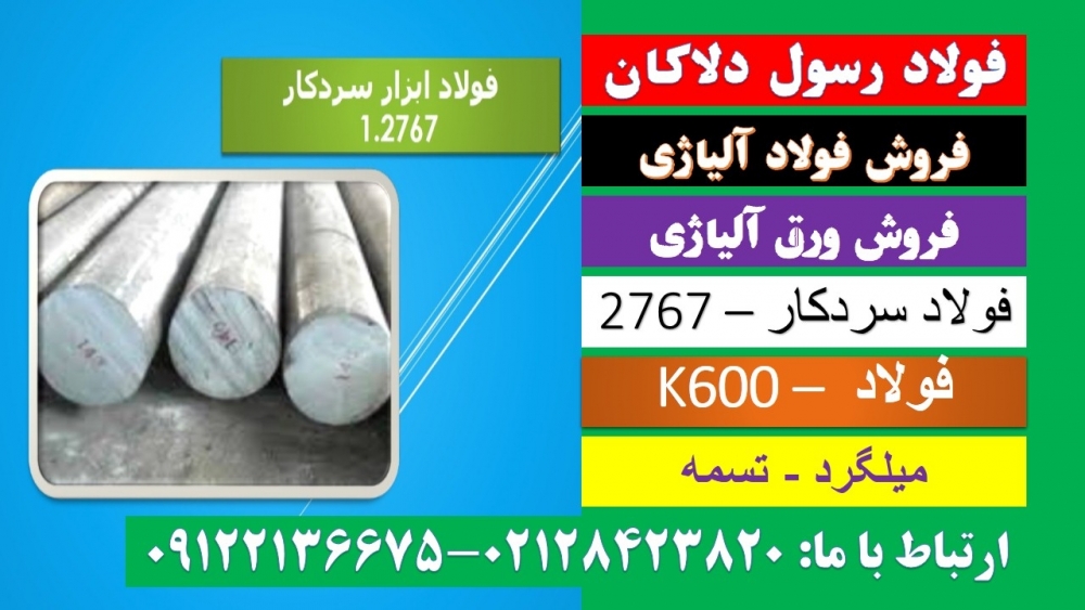 میلگرد2767-تسمه2767-فولادk600-فولاد 1.2767 از دسته فولادهای آلیاژی است که هم در دسته فولاد ابزارهای گرمکار و هم فولاد ابزارهای سردکار قرار میگیرد و در استاندارد بهلر نیز با نام k600 نیز شناخته می شود. فولاد 2767 نسبت به سایر هم گروهی های خود ، از درصد کربن بیشتری برخوردار هستند و همین موضوع سبب ایجاد خواص خوب در مشخصات فولاد 2767 شده است. علاوه بر اینها کیفیت خوب این فولاد ابزار باعث تاثیرگذاری زیاد و مقاومت فشاری بالایی میشود.این فولاد آلیاژی بدلیل برخورداری از ویژگی های خوب ، در صنایع مختلفی کاربرد دارد . از جمله : ابزارهای سکه زنی سوراخ کاری جوشکاری قالب های پلاستیک ساخت قالب قاشق و چنگال