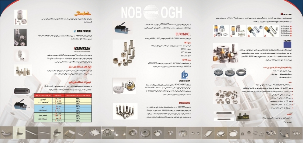 ابزارهای پانچ دستگاه amada در 5 ایستگاه A-ST ,B-ST ,C-ST ,D-ST ,E-ST جزو تولیدات شرکت میباشد