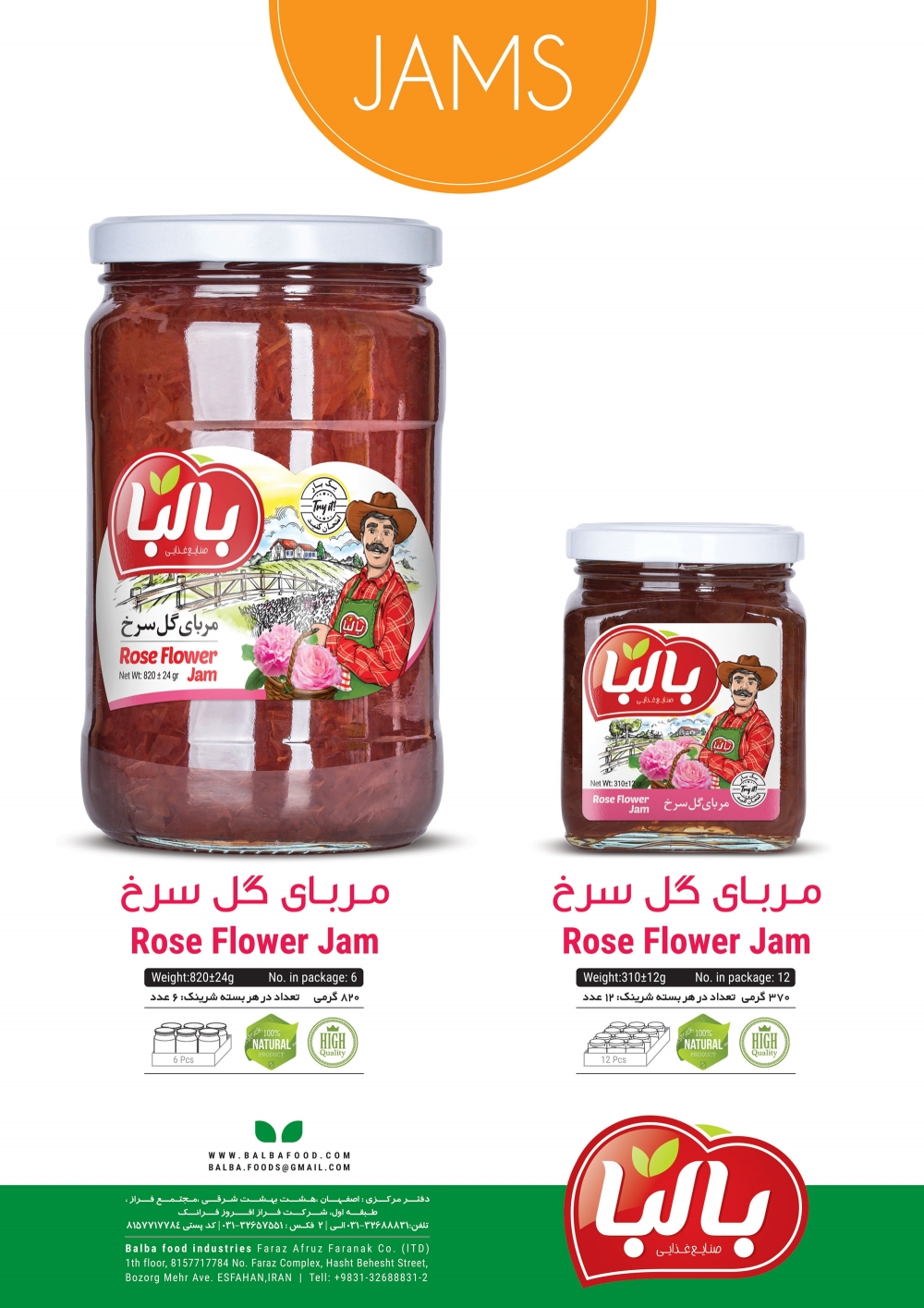 مربا گل سرخ شیشه 820 و شیشه 310 گرمی