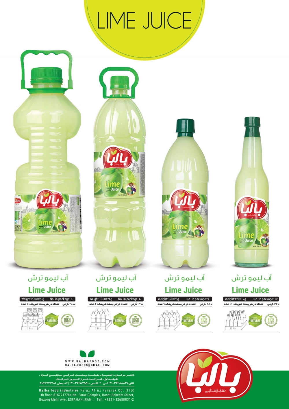 آبلیمو ترش شیشه 420 گرمی و پت 850 میلی لیتری ، 1300 میلی لیتری و 2 لیتری