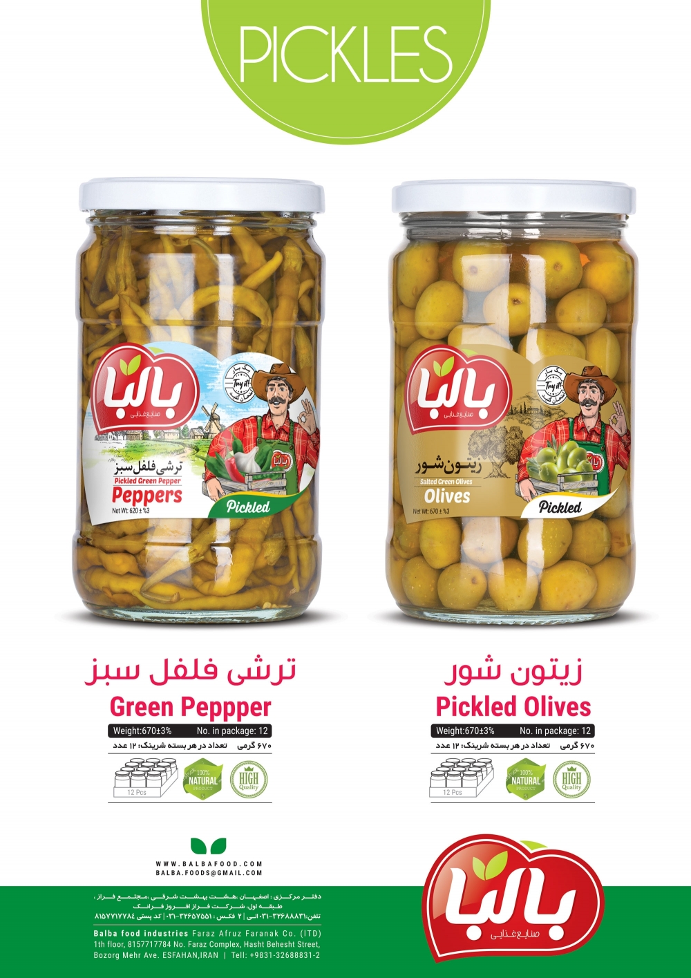 ترشی فلفل سبز و ترشی زیتون شیشه 680 گرمی