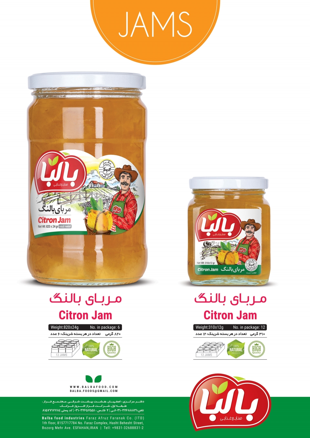 مربا بالنگ شیشه 820 گرمی و 310 گرمی
