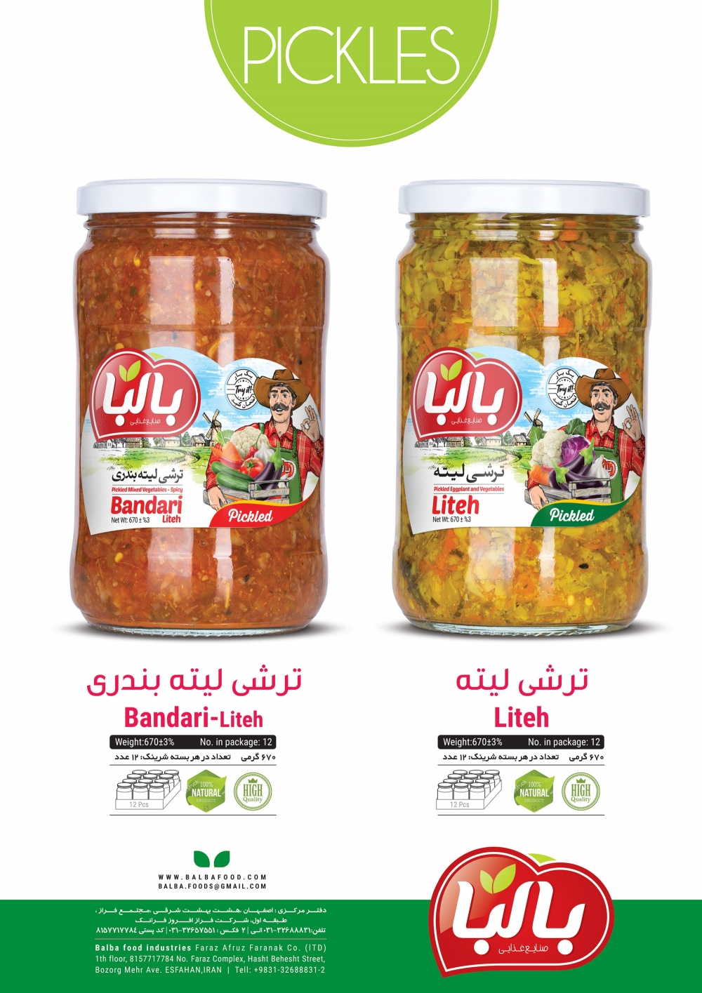 ترشی لیته سبز و لیته بندری شیشه 680 گرمی
