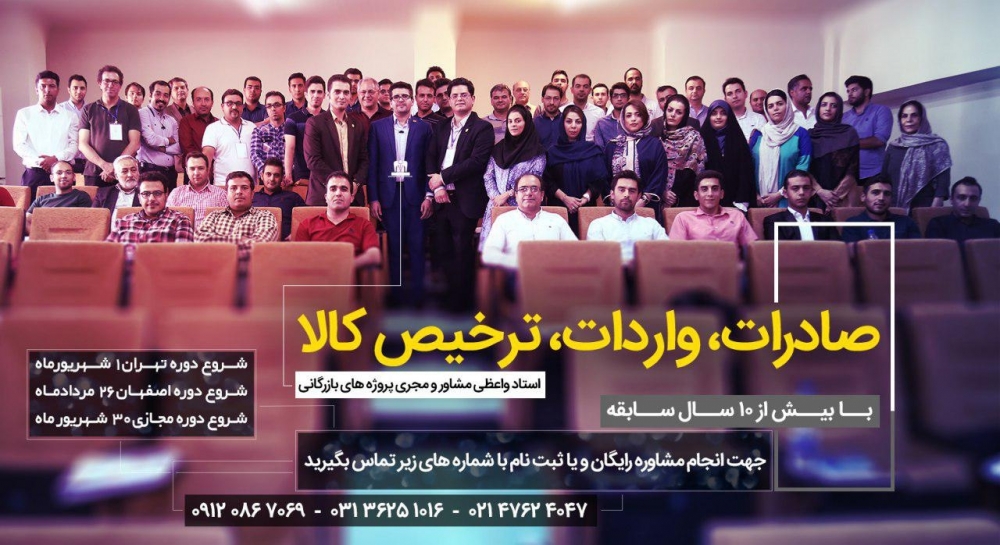 آموزش صفرتا صد واردات و صادرات کالا این دوره در شهرهای تهران و اصفهان به صورت مدام در حال برگزاری می باشد. علاقه مندان جهت کسب اطلاعات بیشتر می توانند با شماره های زیر تماس حاصل فرمایند: 021-47624047 031-36251016 09120148914